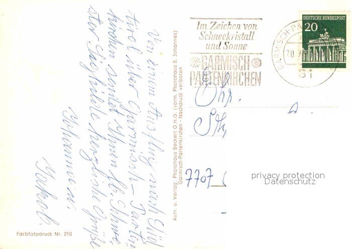 72705736 alte Postkarte GARMISCH-PARTENKIRCHEN Bayern Teilansicht Kirche Platz postalisch gelaufen Erhaltung siehe scans [AndreD76] KatCode: 11110009180117