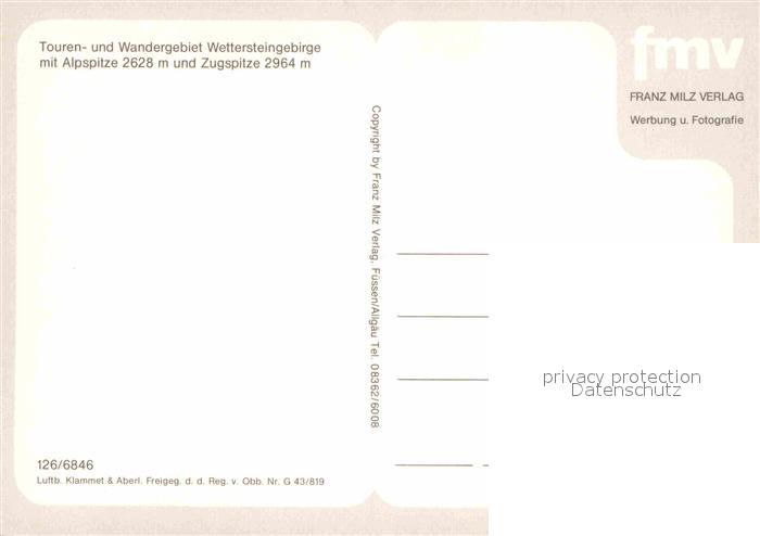72796508 GARMISCH-PARTENKIRCHEN Bayern Touren und Wandergebiet Wettersteingebirge mit Alpspitze und Zugspitze Fliegeraufnahme postalisch nicht gelaufen Erhaltung siehe scans [FriedD77] KatCode: 11110009180117