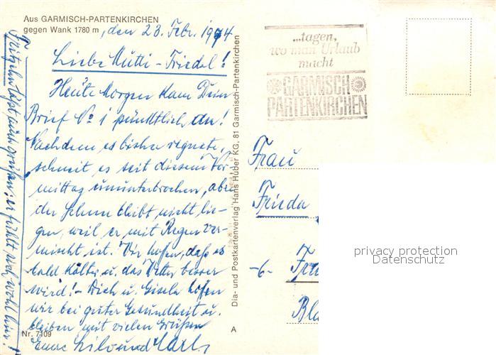 73122295 alte Postkarte GARMISCH-PARTENKIRCHEN Bayern Wank Winterlandschaft postalisch gelaufen Erhaltung siehe scans [KathaD81] KatCode: 11110009180117