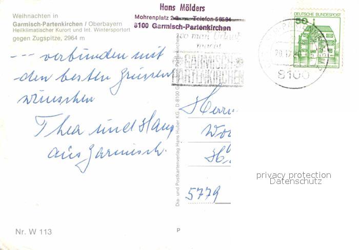 72739849 alte Postkarte GARMISCH-PARTENKIRCHEN Bayern Weihnachtskarte mit Zugspitze postalisch gelaufen Erhaltung siehe scans [LiesaD40] KatCode: 11110009180117