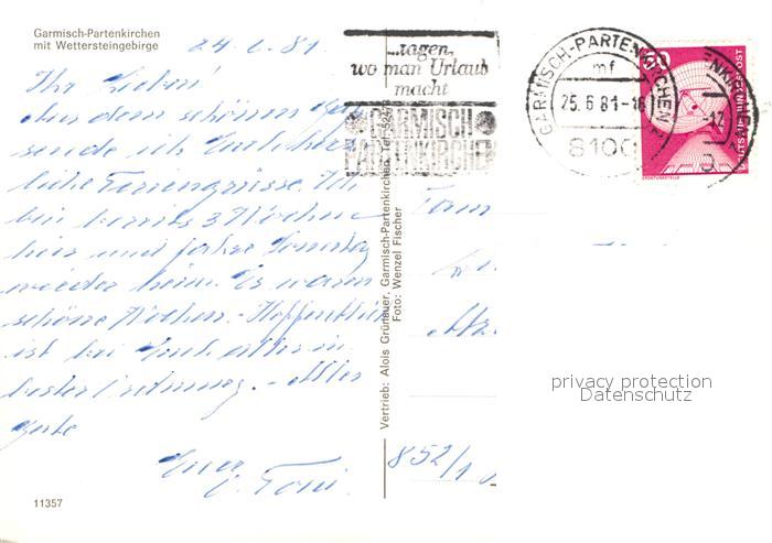 73019459 alte Postkarte GARMISCH-PARTENKIRCHEN Bayern Wettersteingebirge postalisch gelaufen Erhaltung siehe scans [NatalD47] KatCode: 11110009180117