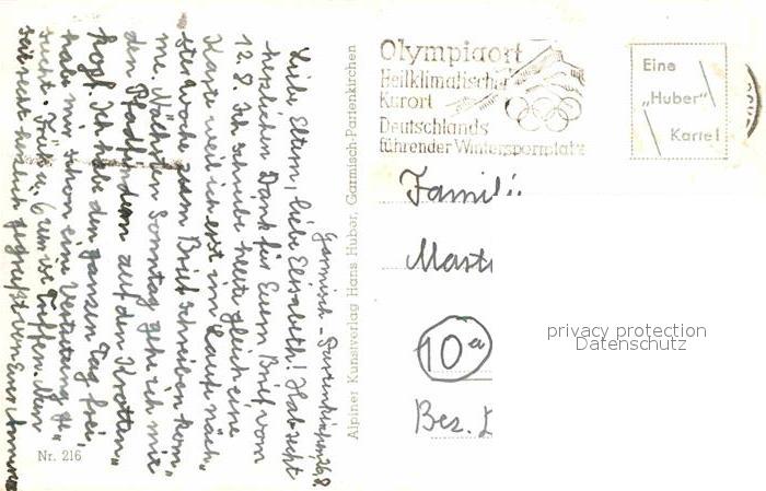 72824529 alte Postkarte GARMISCH-PARTENKIRCHEN Bayern Zugspitze postalisch gelaufen Erhaltung siehe scans [AndreD76] KatCode: 11110009180117