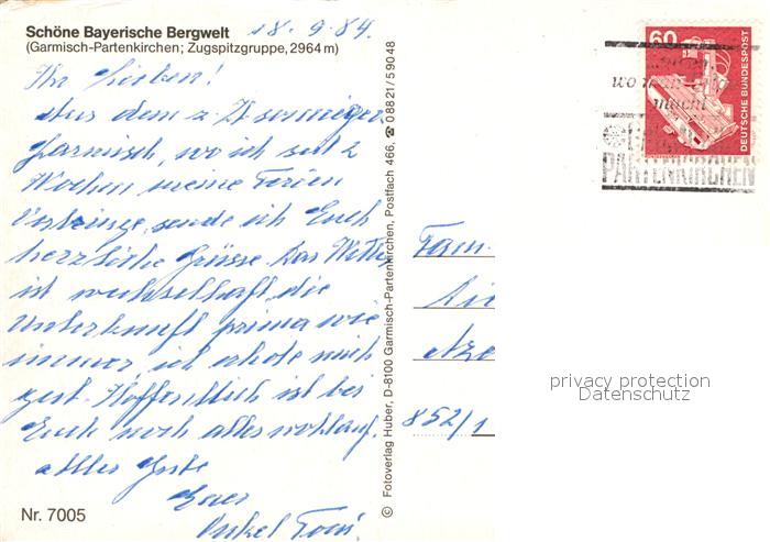 73019458 alte Postkarte GARMISCH-PARTENKIRCHEN Bayern Zugspitzgruppe postalisch gelaufen Erhaltung siehe scans [NatalD47] KatCode: 11110009180117