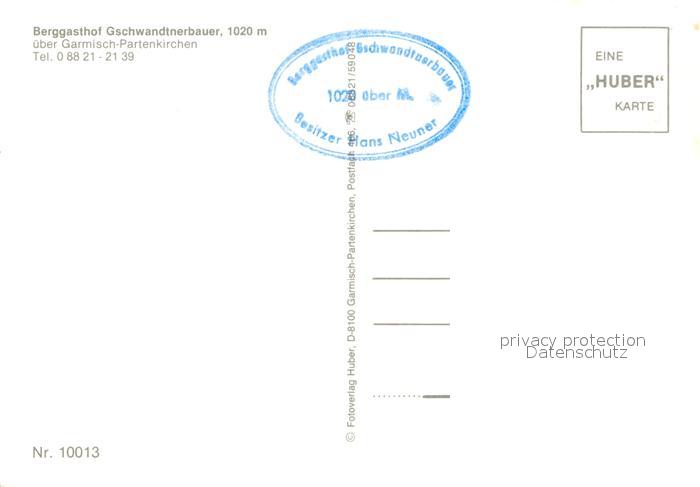 73170474 Garmisch-Partenkirchen Berggasthof Gschwandtnerbauer Zugspitzgruppe Wettersteingebirge Bergwiesen Huber Karte Nr 10013 postalisch nicht gelaufen Erhaltung siehe scans [FriedD77] Frie Katcode 11110009180117