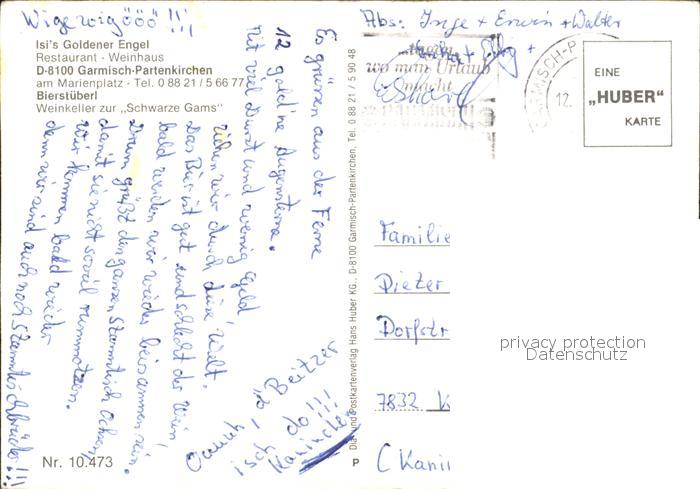 alte Postkarte Garmisch-Partenkirchen Isis Goldener Engel postalisch gelaufen Erhaltung siehe scans