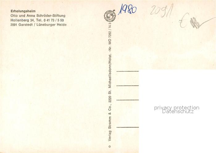 73662239 Garstedt Winsener Geest Erholungsheim Otto und Anna Schroeder Stiftung Lueneburger Heide postalisch nicht gelaufen Erhaltung siehe scans [FriedD77] KatCode: 11110003353012