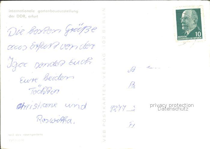 alte Postkarte Gartenbauaustellung Erfurt Rosengarten postalisch gelaufen Erhaltung siehe scans
