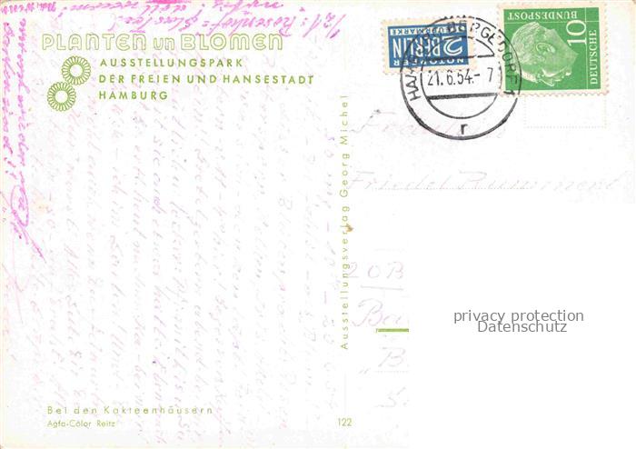 74055524 alte Postkarte Gartenbauaustellung Hamburg Kakteenhaeuser postalisch gelaufen Erhaltung siehe scans [SanaeD93] KatCode: 22100000000100