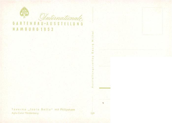 73942598 Gartenbauaustellung Hamburg Taverna Isola Bella Philipsturm postalisch nicht gelaufen Erhaltung siehe scans [IrynaD87] KatCode: 22100000000100