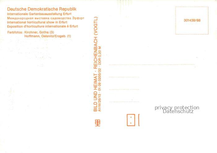 74054192 Gartenbauaustellung International IGA Erfurt DDR postalisch nicht gelaufen Erhaltung siehe scans [SanaeD93] KatCode: 22100000000100