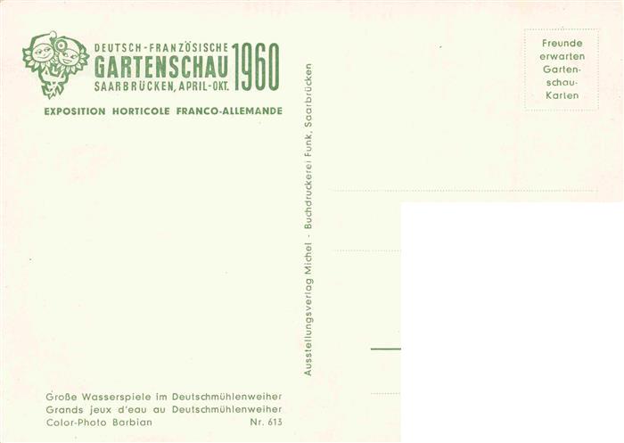 74034707 Gartenschau Saarbruecken Franco Allemande Wasserspiel Deutschmuehlenweiher postalisch nicht gelaufen Erhaltung siehe scans [IrynaD87] KatCode: 22100000000100