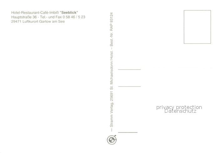 73614974 Gartow Elbe Hotel Restaurant Seeblick Terrasse Gaststube postalisch nicht gelaufen Erhaltung siehe scans [WerneD78] KatCode: 11110003354005