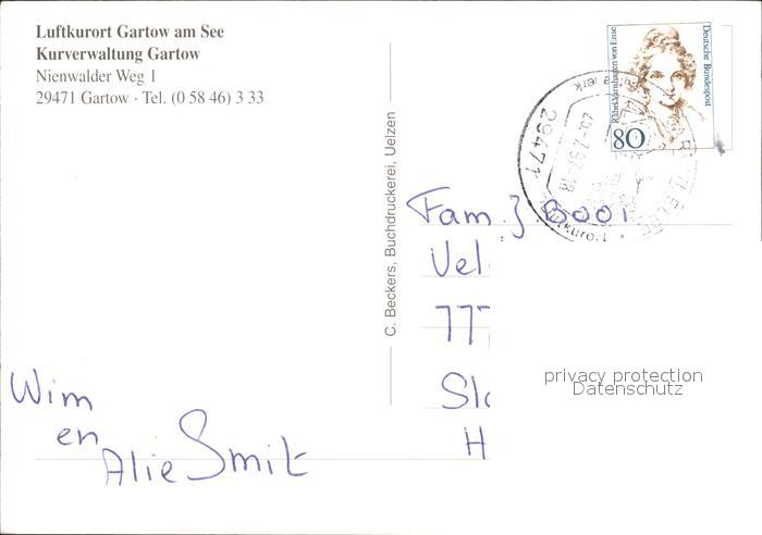 72031087 alte Postkarte Gartow Elbe Luftkurort am See Fliegeraufnahme postalisch gelaufen Erhaltung siehe scans KatCode: 11110003354005