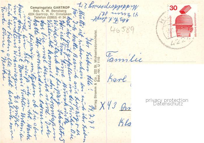 73854080 alte Postkarte Gartrop-Buehl Huenxe Campingplatz Gartrop Restaurant Gaststube Bruecke postalisch gelaufen Erhaltung siehe scans [WerneD78] KatCode: 11110005170016
