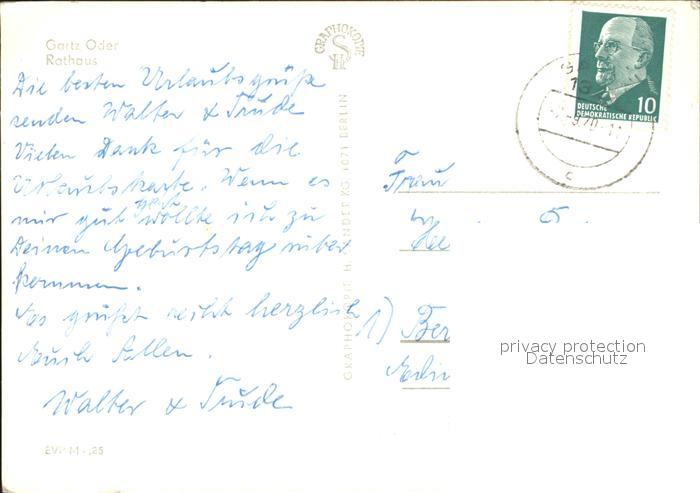 72250204 alte Postkarte Gartz Oder Rathaus Giebel postalisch gelaufen Erhaltung siehe scans KatCode: 11110012073189