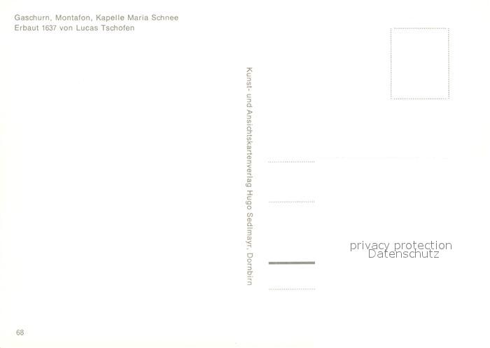 73021144 Gaschurn Vorarlberg Montafon Kapelle Maria Schnee postalisch nicht gelaufen Erhaltung siehe scans [PaolaD17] KatCode: 11390341080110