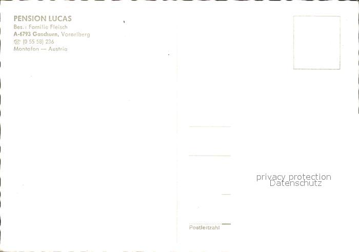 71860031 Gaschurn Vorarlberg Pension Lucas postalisch nicht gelaufen Erhaltung siehe scans KatCode: 11390341080110