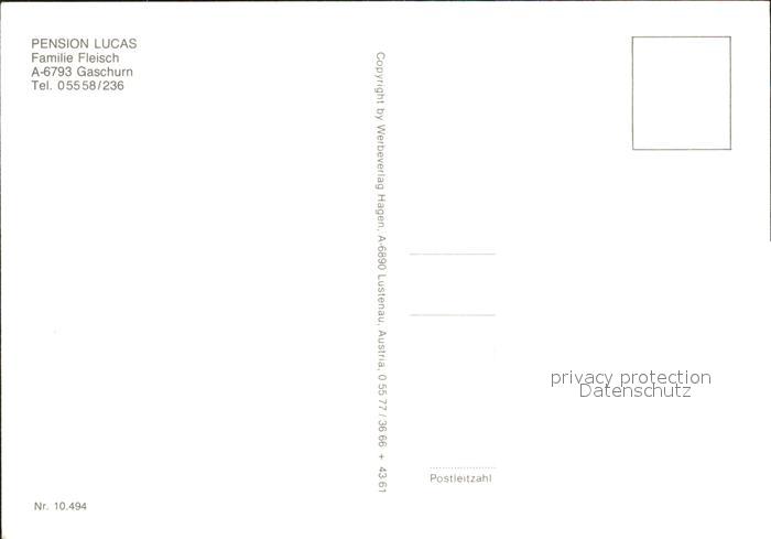 71860017 Gaschurn Vorarlberg Pension Lucas postalisch nicht gelaufen Erhaltung siehe scans KatCode: 11390341080110