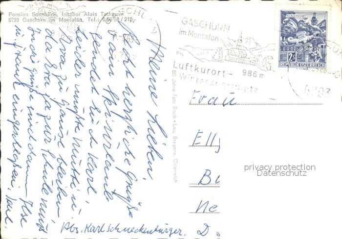 12010561 alte Postkarte Gaschurn Vorarlberg Pension Sonnblick postalisch gelaufen Erhaltung siehe scans KatCode: 11390341080110