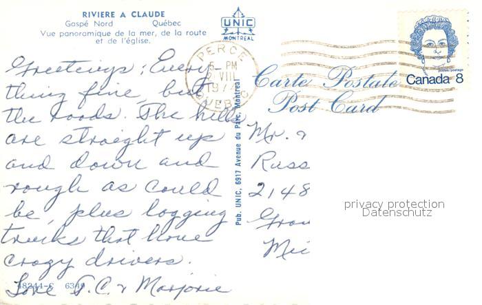 old postcard Gaspé Nord Riviere a Claude postalisch gelaufen Erhaltung siehe scans [WerneD78]