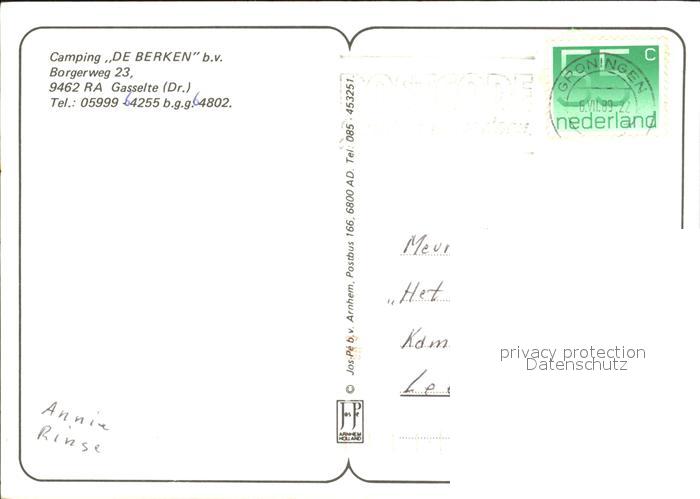old postcard Gasselte Aa en Hunze Camping De Berken postalisch gelaufen Erhaltung siehe scans
