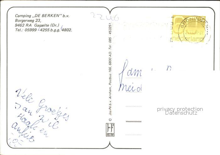 old postcard Gasselte Aa en Hunze Camping De Berken postalisch gelaufen Erhaltung siehe scans