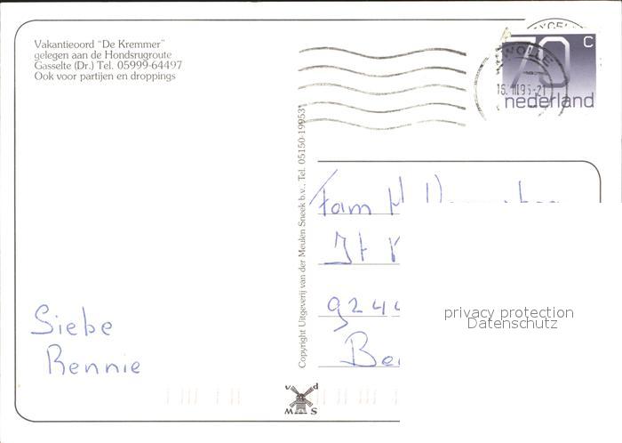 old postcard Gasselte Aa en Hunze Ferienort De Kremmer Hondsrugroute postalisch gelaufen Erhaltung siehe scans