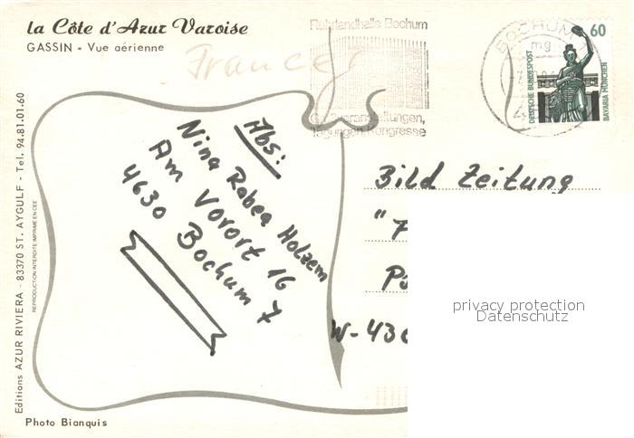 13744580 Gassin Côte d Azur Varoise vue aérienne postalisch gelaufen Erhaltung siehe scans [FriedD77] carte postale Frie Katcode 11170083183065