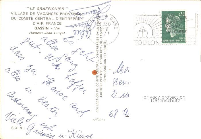 12324974 carte postale Gassin Hameau Jean Lurcat postalisch gelaufen Erhaltung siehe scans KatCode: 11170083183065