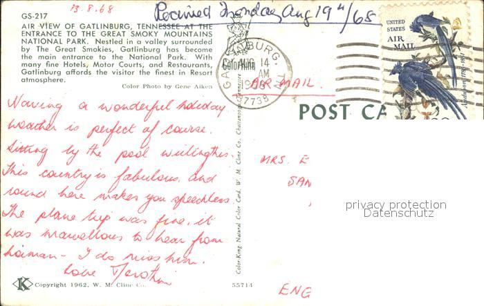 72428672 old postcard Gatlinburg Air view postalisch gelaufen Erhaltung siehe scans KatCode: 14140450000000