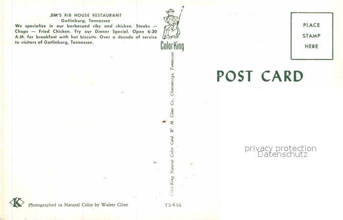 12869870 Gatlinburg Jim’s Rib House Restaurant postalisch nicht gelaufen Erhaltung siehe scans [PaolaD17] KatCode: 14140450000000