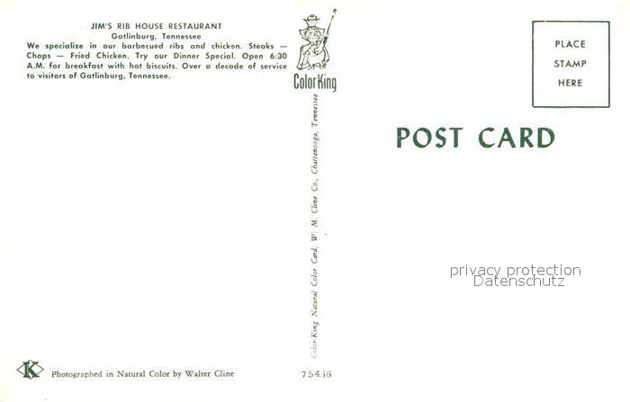 12869877 Gatlinburg Jim’s Rib House Restaurant postalisch nicht gelaufen Erhaltung siehe scans [PaolaD17] KatCode: 14140450000000