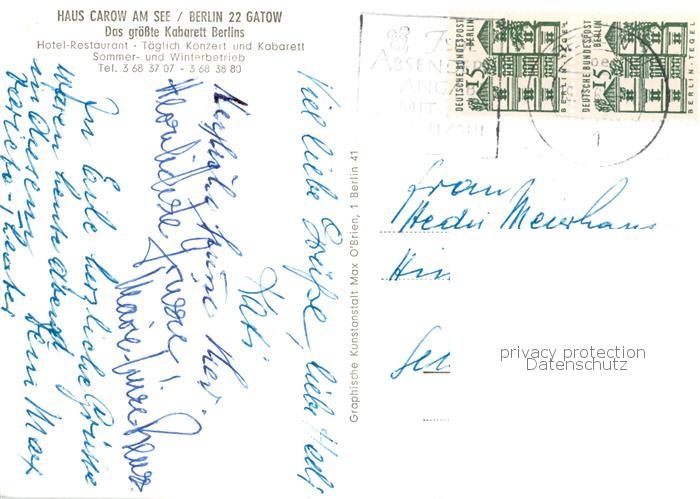 73835175 alte Postkarte Gatow Berlin Haus Carow am See postalisch gelaufen Erhaltung siehe scans [WerneD78] KatCode: 11110011000000