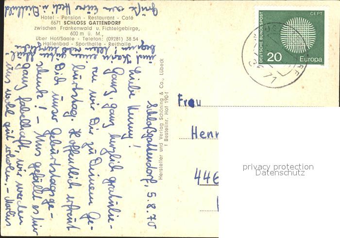 72245039 alte Postkarte Gattendorf Burgenland Hotel Pension Restaurant Cafe Schloss Gattendorf postalisch gelaufen Erhaltung siehe scans KatCode: 11390112010706