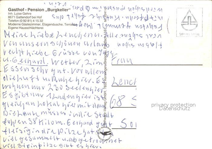72261020 alte Postkarte Gattendorf Oberfranken Gasthof Pension Burgkeller Restaurant Terrasse postalisch gelaufen Erhaltung siehe scans KatCode: 11110009475127