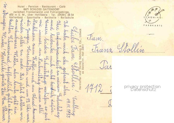 72841699 alte Postkarte Gattendorf Oberfranken Hotel Pension Restaurant Cafe Schloss Pferde postalisch gelaufen Erhaltung siehe scans [LiesaD40] KatCode: 11110009475127