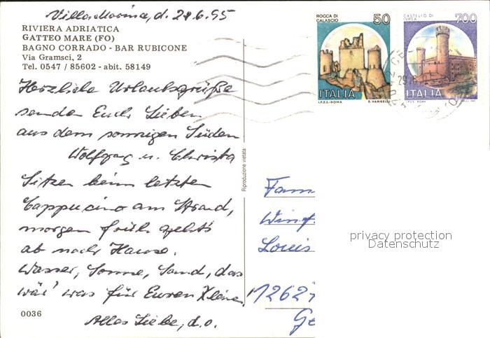 old postcard Gatteo Mare Bagne Corrado postalisch gelaufen Erhaltung siehe scans
