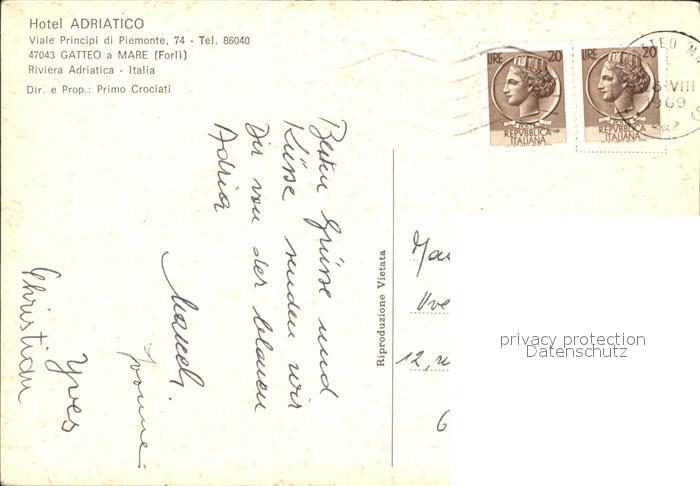 old postcard Gatteo Mare Hotel Adriatico postalisch gelaufen Erhaltung siehe scans