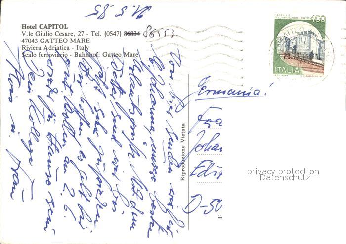 old postcard Gatteo Mare Hotel Capitol Strand postalisch gelaufen Erhaltung siehe scans