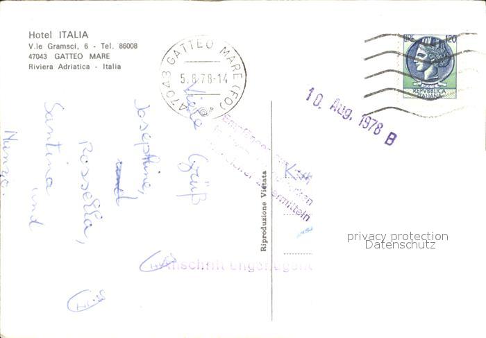 old postcard Gatteo Mare Hotel Italia postalisch gelaufen