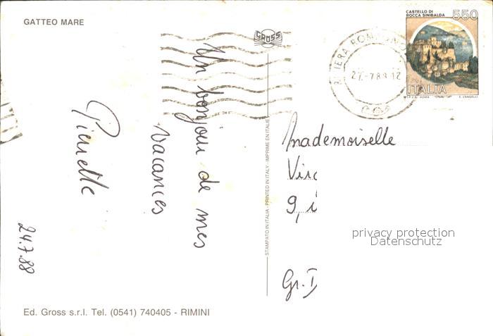 old postcard Gatteo Mare Panorama Strand Kueste Hotel Windsurfen Sonnenuntergang am Meer postalisch gelaufen Erhaltung siehe scans