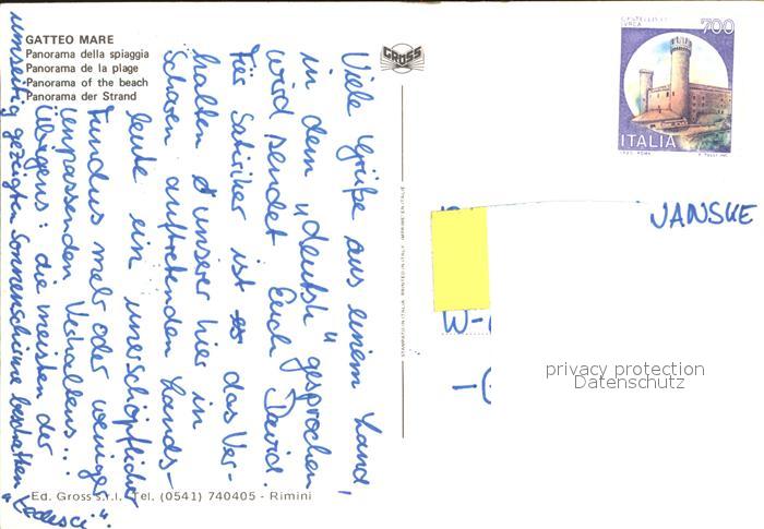 old postcard Gatteo Mare Spiaggia Strand Hotels postalisch gelaufen Erhaltung siehe scans