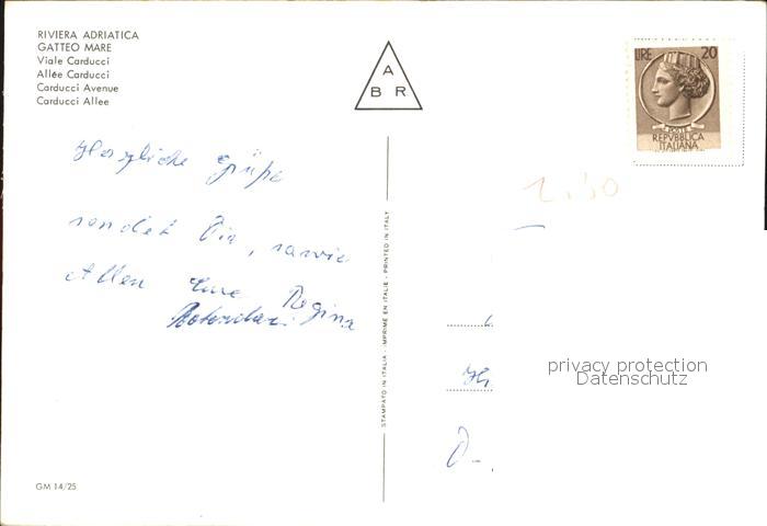 old postcard Gatteo Mare Viale Carducci postalisch gelaufen Erhaltung siehe scans