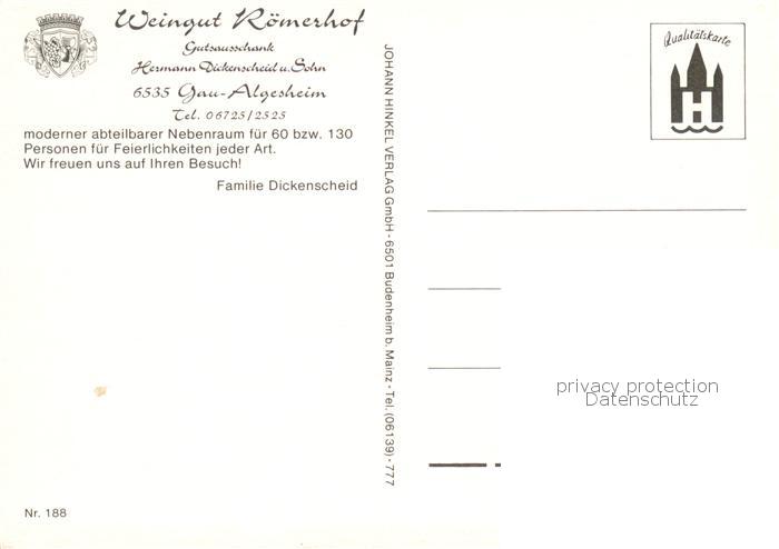 73844711 Gau-Algesheim Weingut Roemerhof Gastraeume postalisch nicht gelaufen Erhaltung siehe scans [WerneD78] KatCode: 11110007339019