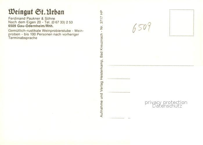 73708653 Gau-Odernheim Weingut St. Urban Weinkeller Gastraum Weinlese postalisch nicht gelaufen Erhaltung siehe scans [FriedD77] KatCode: 11110007331032
