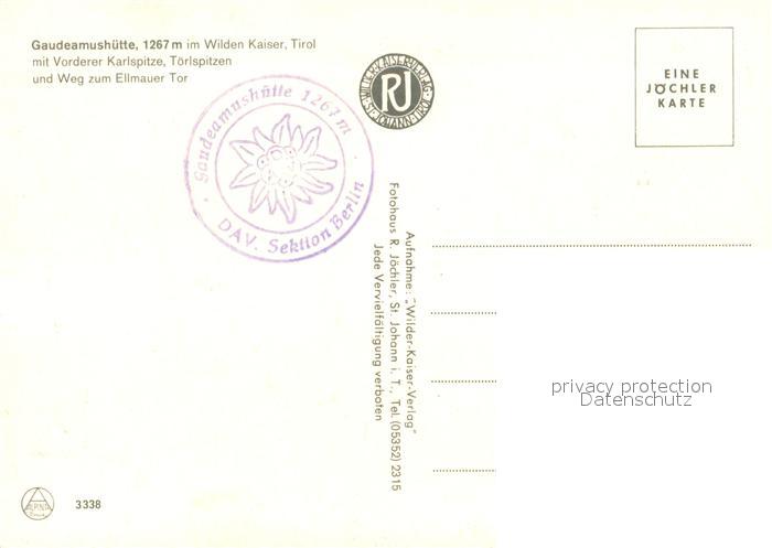 73159840 Gaudeamushuette Berghaus Weg zum Ellmauer Tor Kaisergebirge postalisch nicht gelaufen Erhaltung siehe scans [FriedD77] KatCode: 11390332070368