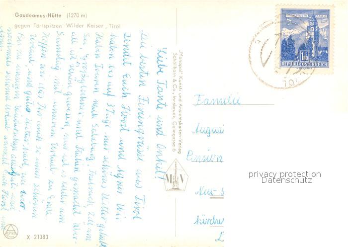73649420 alte Postkarte Gaudeamushuette mit Toerlspitzen und Wilder Kaiser postalisch gelaufen Erhaltung siehe scans [WerneD78] KatCode: 11390332070368