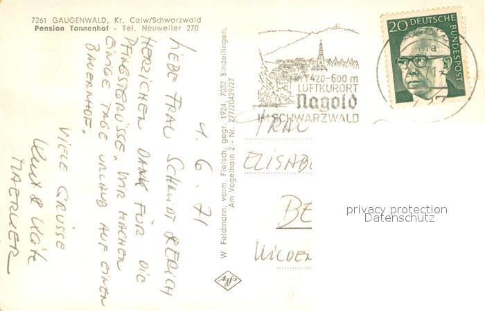 73722667 alte Postkarte Gaugenwald Pension Tannenhof Landschaftspanorama Schwarzwald postalisch gelaufen Erhaltung siehe scans [FriedD77] KatCode: 11110008235050