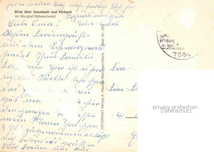 72744993 alte Postkarte Gausbach Panorama Murgtal Schwarzwald postalisch gelaufen Erhaltung siehe scans [FriedD77] KatCode: 11110008216013