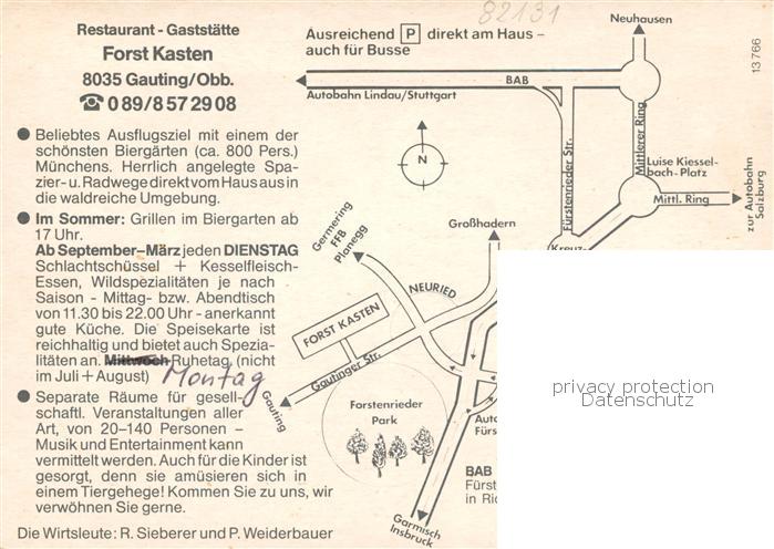 73863253 Gauting Restaurant Gaststaette Forst Kasen Gartenterrasse postalisch nicht gelaufen Werbekarte (keine Postkarte) Erhaltung siehe scans [FriedD77] KatCode: 11110009188120